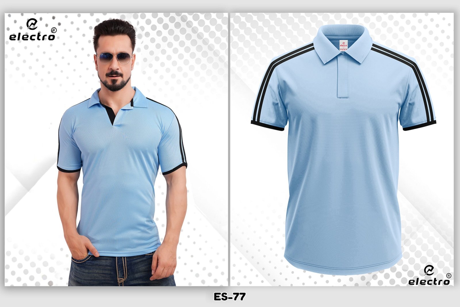 Looking for a fresh and stylish light blue dryfit polo t-shirt Ahmedabad? The ES-77 design is a perfect choice. It offers a clean and modern look with excellent comfort. As a result, it is ideal for corporate wear, sports teams, and promotional branding.