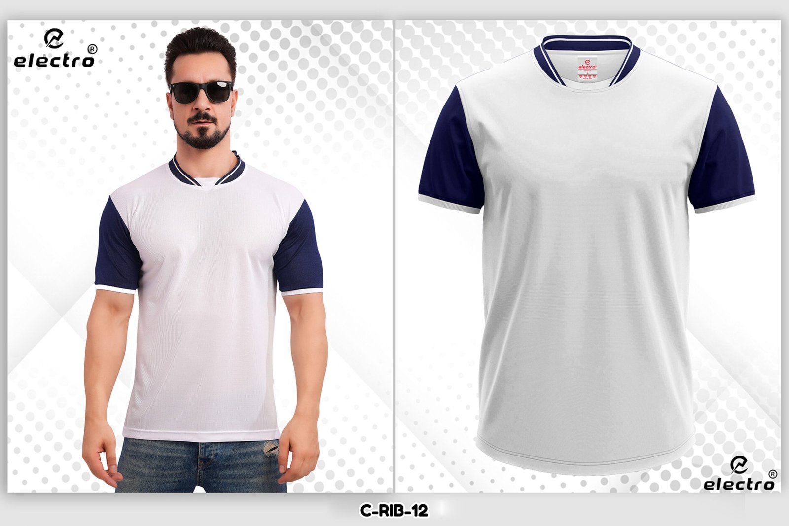 Looking for a clean and professional white navy t-shirt Ahmedabad? The C-RIB-12 design is a perfect choice. It offers a smart color combination with excellent comfort. As a result, it is ideal for corporate uniforms, sports teams, and promotional events.