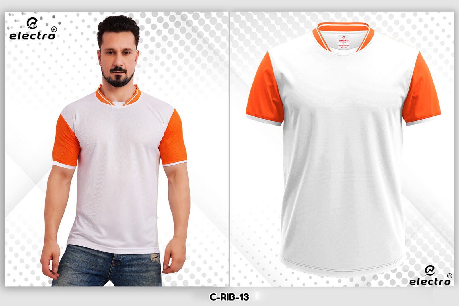 Looking for a vibrant and stylish white orange t-shirt Ahmedabad? The C-RIB-13 design is a perfect choice. It offers a bright and energetic color combination. As a result, it is ideal for sports teams, promotional events, and corporate branding.